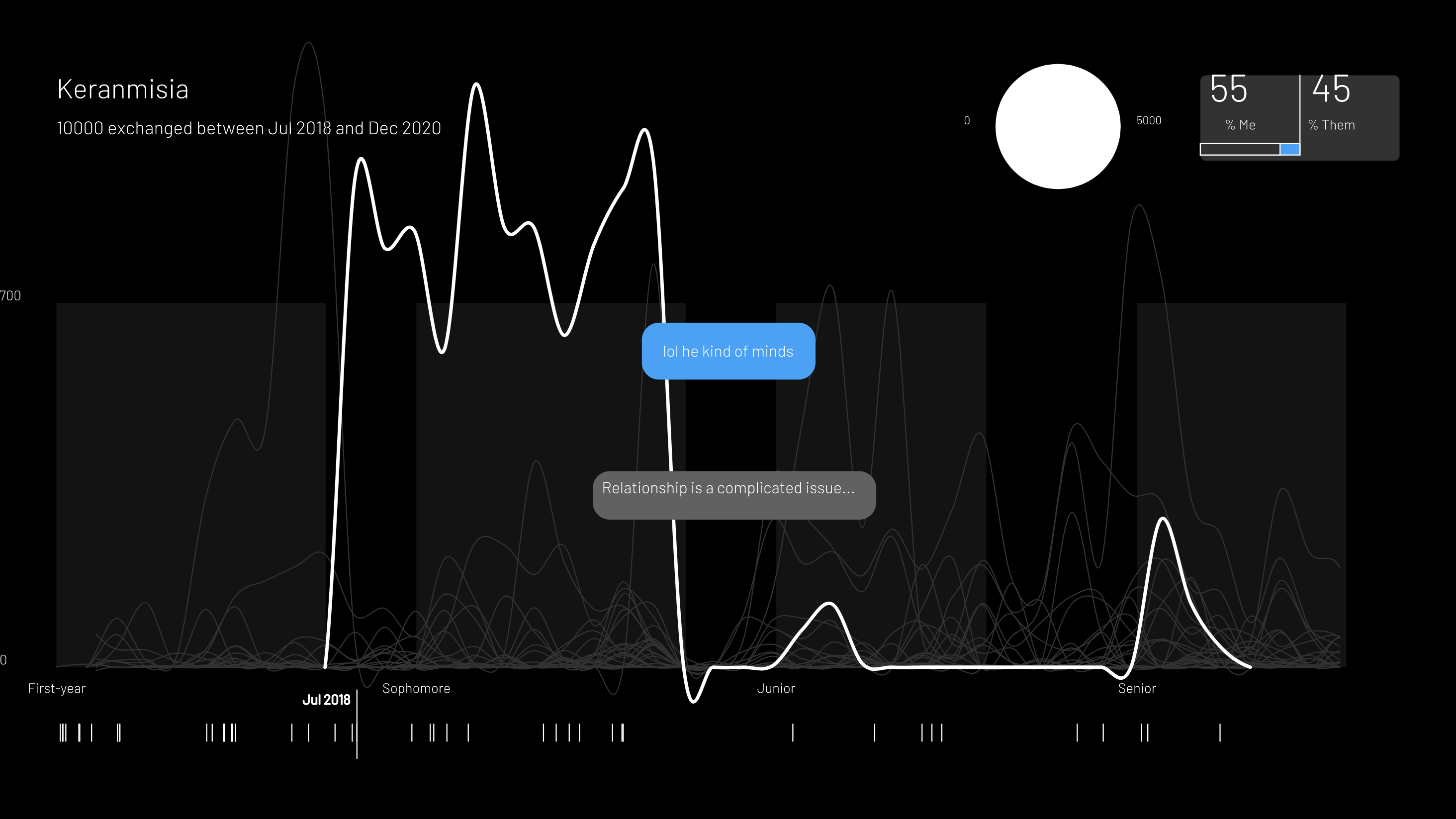 (Original interactive project not online because it contained thousands of personal messages.)